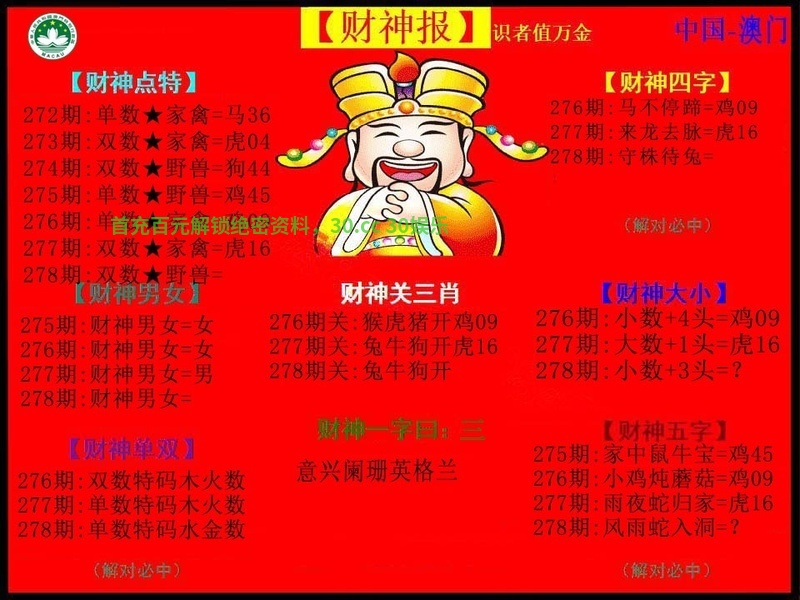283期:六肖【牛狗虎龙马蛇】开:發00准 | |||