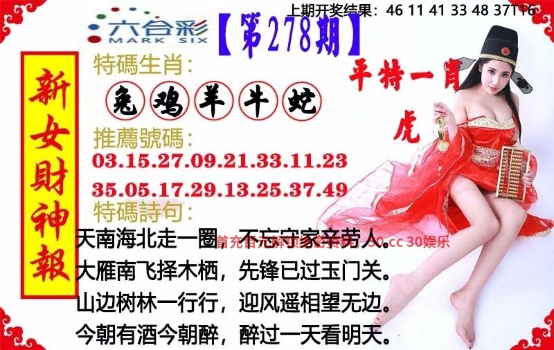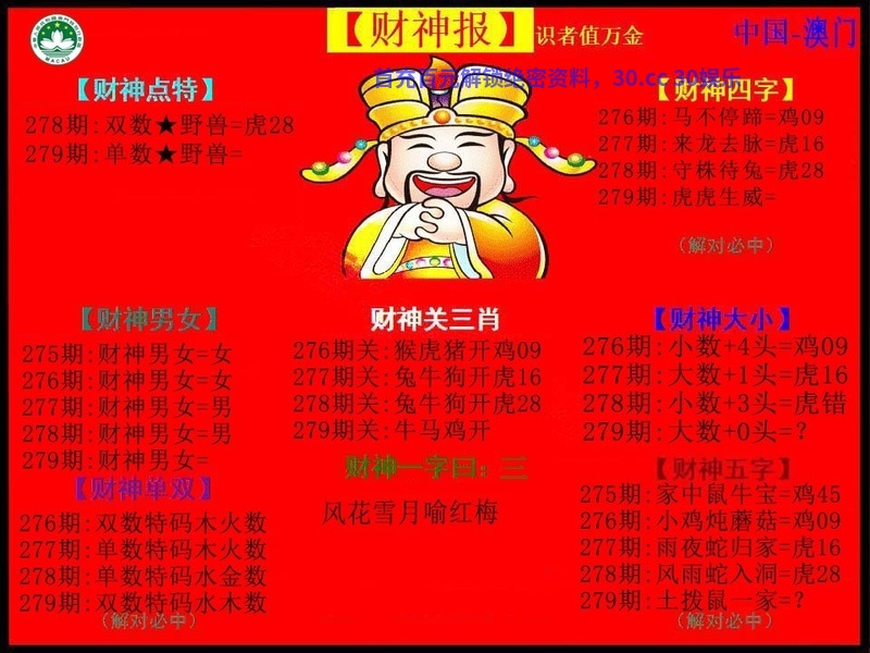 283期六合财神解诗句: 更新中 更新中 主特八肖:更新中 |