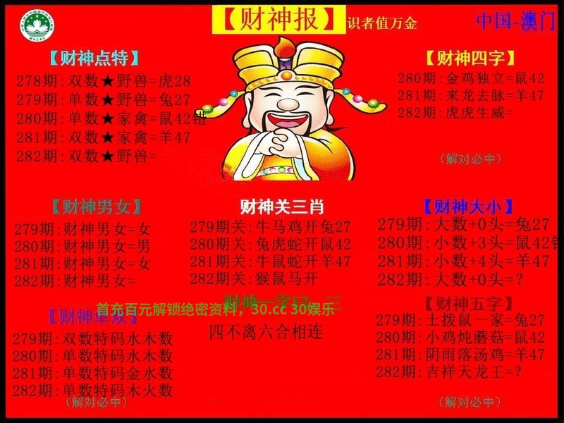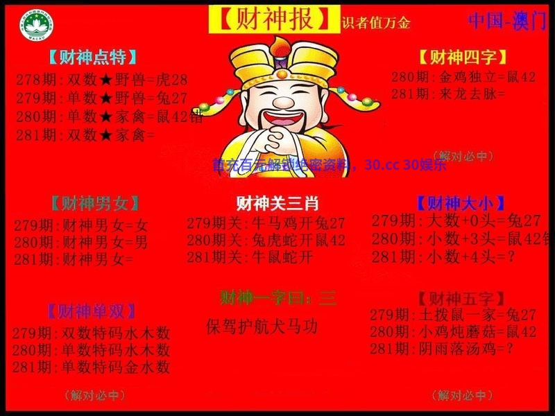 280期:六肖【鼠虎猪蛇鸡狗】开:鼠42准 | |||